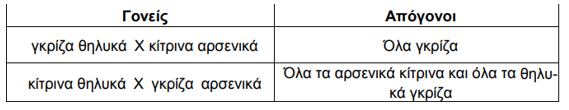 3. H μυϊκή δυστροφία Duchenne (DMD) προκαλείται από ένα υπολειπόμενο γονίδιο που βρίσκεται στο ανθρώπινο χρωμόσωμα Χ. Οι ασθενείς έχουν μυς που γίνονται πιο αδύναμοι με την πάροδο του χρόνου, επειδή έχουν μερική έλλειψη ή απουσία δυστροφίνης, μιας πρωτεΐνης των μυών. Σπάνια ζουν μετά τα 20 χρόνια. Πόσο πιθανό είναι για μια γυναίκα να έχει αυτή την κατάσταση; 8. Αν μόνο ο πατέρας φέρει χαρακτηριστικό που ελέγχεται από φυλοσύνδετο επικρατές γονίδιο: 10. Στη διασταύρωση μεταξύ αμιγών κίτρινων και γκρίζων φρουτόμυγων πάρθηκαν τα παρακάτω αποτελέσματα: