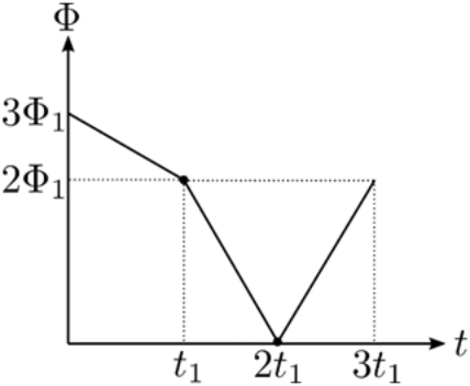 Β) Το επαγωγικό φορτίο που μετατοπίζεται σε μια διατομή του κυκλικού αγωγού απ’ τη στιγμή \[t=0\] ως τη στιγμή \[t=4t_1\] έχει απόλυτη τιμή: