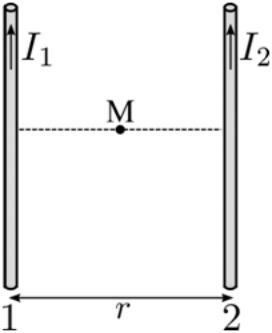 20. Ποιες από τις παρακάτω προτάσεις είναι σωστές; Η ένταση του μαγνητικού πεδίου: 21. Ο κατακόρυφος αγωγός του σχήματος (α) είναι μεγάλου μήκους. Ο αγωγός διαρρέεται από σταθερό ρεύμα έντασης \[Ι\]. Σημείο Κ απέχει απόσταση \[d\] απ’ τον αγωγό. Στρέφω τον αγωγό γύρω από άξονα που περνά απ’ το μέσο του και είναι κάθετος σ’ αυτόν κατά \[90^0\], όπως στο σχήμα β. Η μαγνητική διαπερατότητα του κενού είναι \[μ_0\].