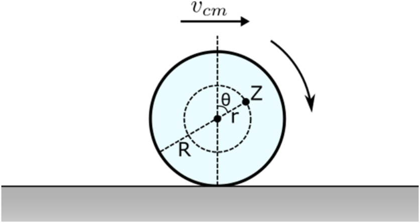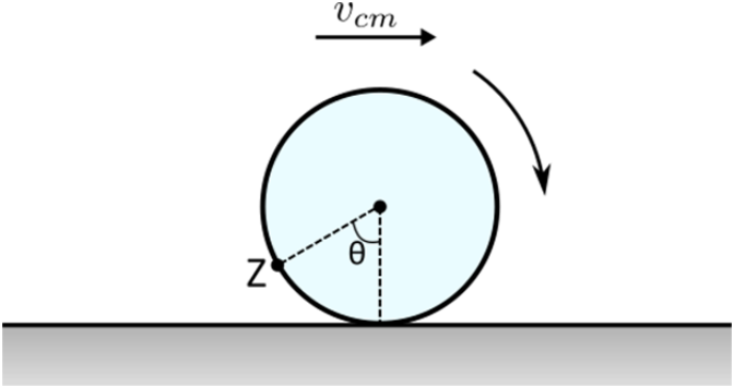 22. Ομογενής τροχός ακτίνας \[R\] κυλίεται χωρίς να ολισθαίνει πάνω σε οριζόντιο επίπεδο και η γωνιακή του ταχύτητα είναι σταθερή και έχει μέτρο \[ω\]. Ποιες από τις επόμενες προτάσεις είναι σωστές; 24. Στερεό εκτελεί μεταβαλλόμενη στροφική κίνηση γύρω από σταθερό άξονα περιστροφής. Ποιες απ’ τις παρακάτω προτάσεις είναι σωστές; Η γωνιακή επιτάχυνση του στερεού σώματος: 27. Σε ένα αρχικά ακίνητο σώμα που βρίσκεται εκτός πεδίου βαρύτητας ασκείται δύναμη \[\vec{F}\]. Αν ο φορέας της δύναμης \[\vec{F}\] δεν διέρχεται από το κέντρο μάζας του σώματος, τότε αυτό: 28. Ο ομογενής τροχός ακτίνας \[R\] του παρακάτω σχήματος κυλίεται χωρίς να ολισθαίνει σε οριζόντιο δάπεδο και το κέντρο μάζας του έχει σταθερή επιτάχυνση μέτρου \[α_{cm}\]. Τη χρονική στιγμή \[t_1\] το μέτρο της γωνιακής ταχύτητας του τροχού είναι \[ω_1\].