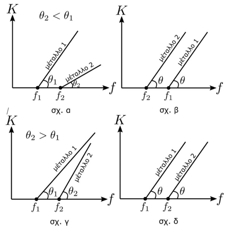 4. Ποιες απ’ τις παρακάτω προτάσεις είναι σωστές; 6. Ένας πυρήνας και ένα νετρόνιο βάλλονται ταυτόχρονα μέσα σ’ ένα ομογενές μαγνητικό πεδίο με ίσες κατά μέτρο ορμές που είναι κάθετες στις δυναμικές γραμμές του πεδίου. Ποιες απ’ τις παρακάτω προτάσεις είναι σωστές; 11. Μια μονοχρωματική ακτινοβολία συχνότητας \[f\] όταν προσπέσει σε κάθοδο από καίσιο εξοστρακίζει τα ηλεκτρόνιά της με μέγιστη κινητική ενέργεια \[K\] που είναι ίση με το έργο εξαγωγής του καισίου. Αν διπλασιάσουμε τη συχνότητα της προσπίπτουσας μονοχρωματικής, τότε τα ηλεκτρόνια της καθόδου: 12. Σκεδάζεται ένα ερυθρό και ένα πράσινο φωτόνιο από ακίνητο ελεύθερο ηλεκτρόνιο. Ποιες από τις παρακάτω προτάσεις είναι σωστές για ίδιες γωνίες σκέδασης; 13. Στη διάταξη του φωτοηλεκτρικού φαινομένου προσπίπτει μονοχρωματική ακτινοβολία συχνότητας \[f\]. Το έργο εξαγωγής του μετάλλου είναι \[φ\]. Ποιες απ’ τις παρακάτω προτάσεις είναι σωστές; 14. Ποιες απ’ τις παρακάτω προτάσεις είναι σωστές; 21. Σε ποιες απ’ τις παρακάτω κινήσεις το μήκος κύματος de Broglie του σωματίου μειώνεται; 23. Ποια απ’ τις παρακάτω προτάσεις είναι σωστή; Στο διάγραμμα της έντασης της θερμικής ακτινοβολίας ανά μονάδα μήκους κύματος \[Ι(λ)\] με το μήκος κύματος \[λ\] (διάγραμμα αφετικής ικανότητας) ενός μέλανος σώματος το \[λ_{max}\]: 24. Ποιες απ’ τις παρακάτω προτάσεις είναι σωστές; Στο διάγραμμα της έντασης της ακτινοβολίας ανά μονάδα μήκους κύματος \[Ι(λ)\] με το μήκος κύματος \[λ\] για ένα μέλαν σώμα, το \[λ_{max}\]: 25. Ποιες απ’ τις παρακάτω προτάσεις είναι σωστές; 26. Ποιες απ’ τις παρακάτω προτάσεις είναι σωστές; Σε μια σκέδαση Compton: 27. Ποια απ’ τις παρακάτω προτάσεις είναι σωστή; Αν η διαφορά δυναμικού μεταξύ ανόδου-καθόδου είναι θετική \[( V_{αν} - V_{καθ}>0)\] τότε: 30. Μαθητής πειραματίστηκε με τη φωτοηλεκτρική διάταξη και με τις τιμές που συγκέντρωσε έκανε το παρακάτω διάγραμμα της έντασης του φωτορεύματος με τη διαφορά δυναμικού μεταξύ καθόδου-ανόδου όταν διατήρησε σταθερή τη συχνότητα της προσπίπτουσας ακτινοβολίας. Το διάγραμμα που έφτιαξε είναι σίγουρα λάθος γιατί: