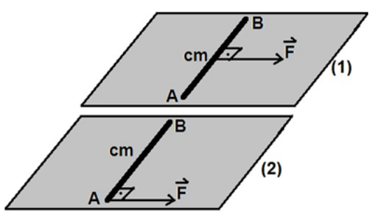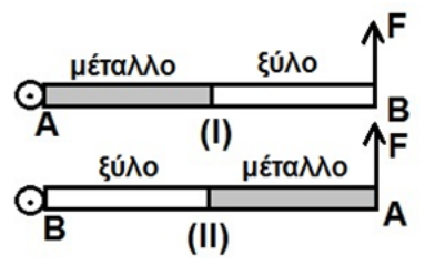 20. Μια οριζόντια ράβδος έχει τη δυνατότητα να στρέφεται γύρω από κατακόρυφο άξονα \[z'z\] ο οποίος διέρχεται από το ένα άκρο της. Σε ποια από τις περιπτώσεις που περιγράφονται στα παρακάτω σχήματα η ροπή της δύναμης \[\vec{F}\] μπορεί να περιστρέψει τη ράβδο γύρω από τον άξονα \[z’z\];